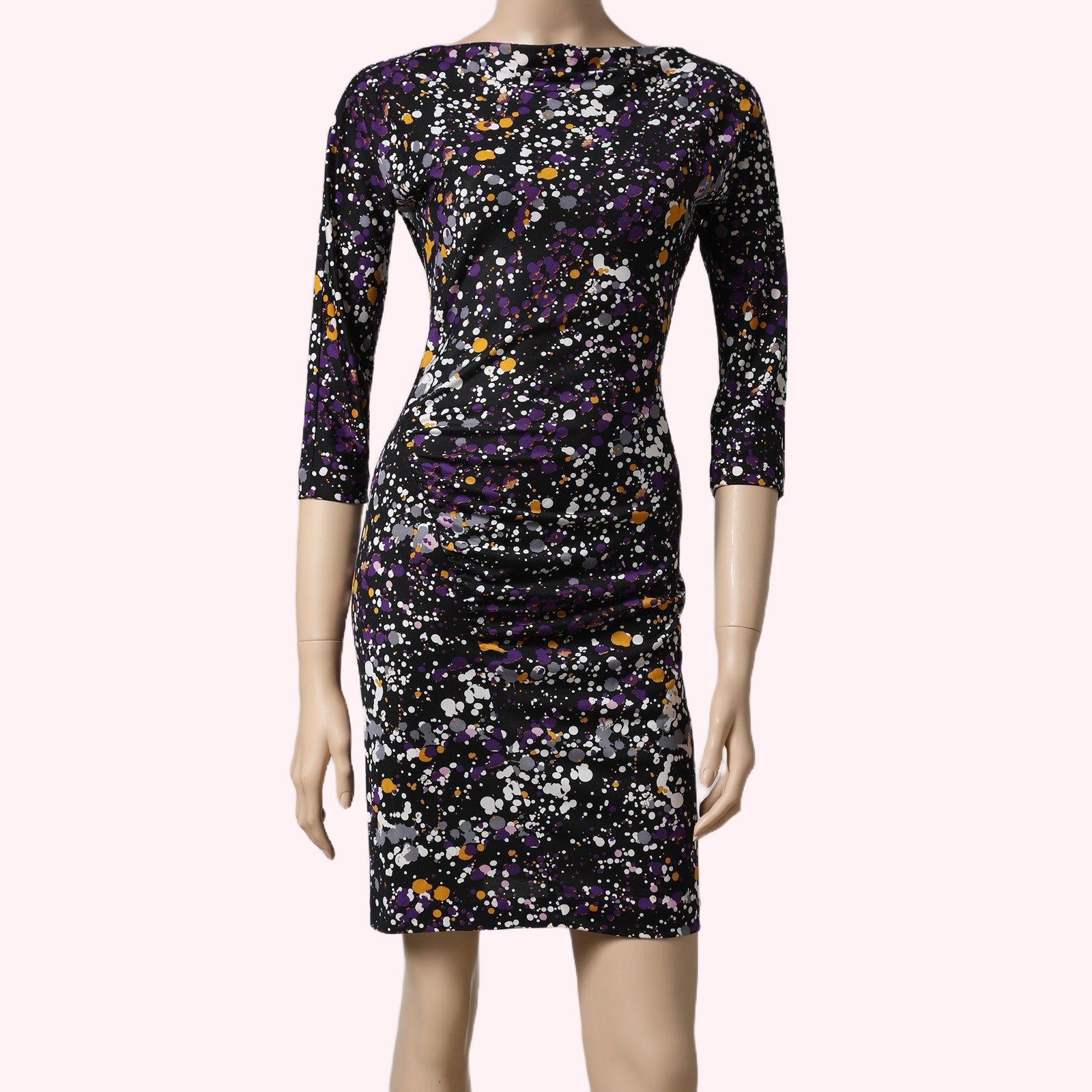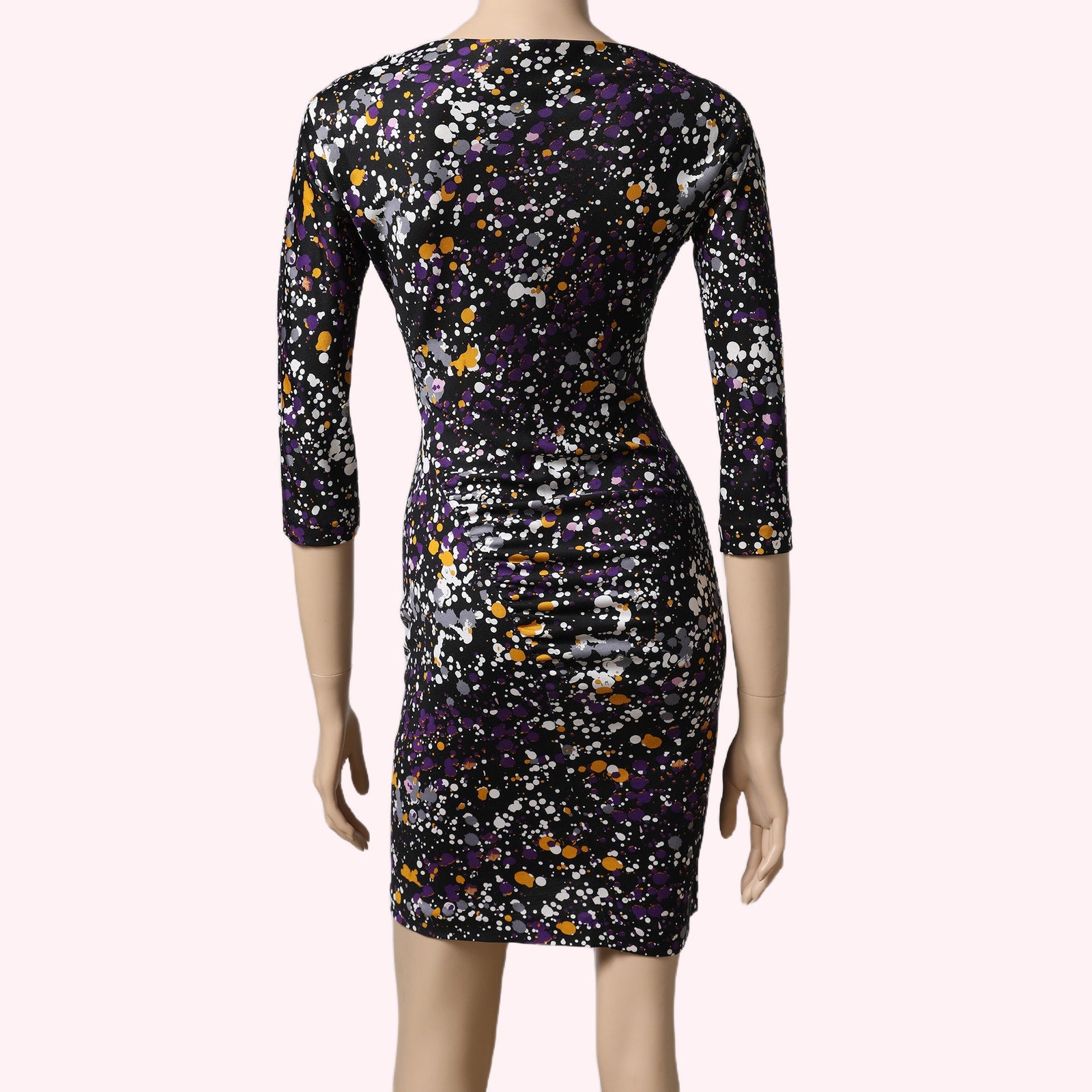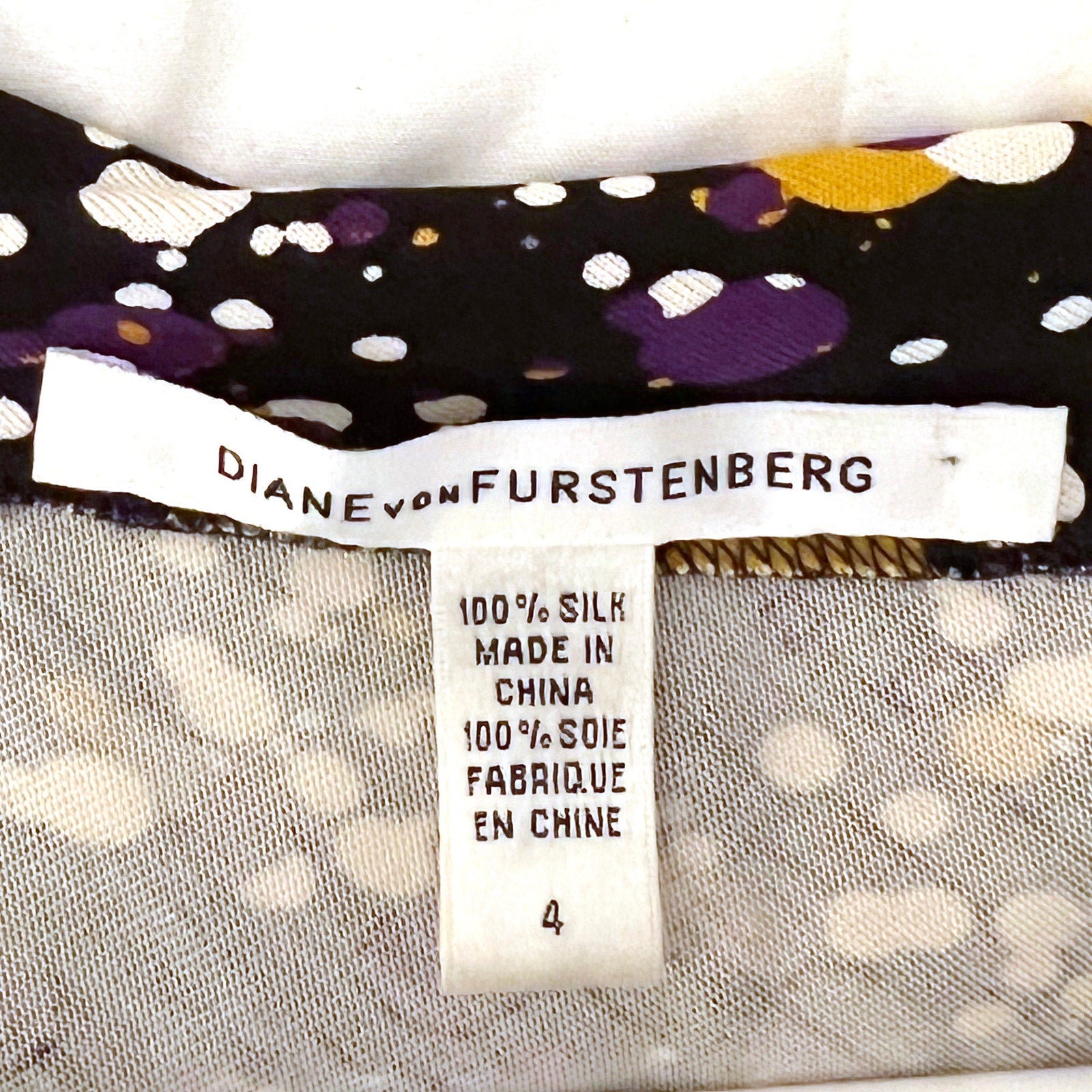 DIANE VON FURSTENBERG Multicolor Paint Splatter Long Sleeve Silk Dress