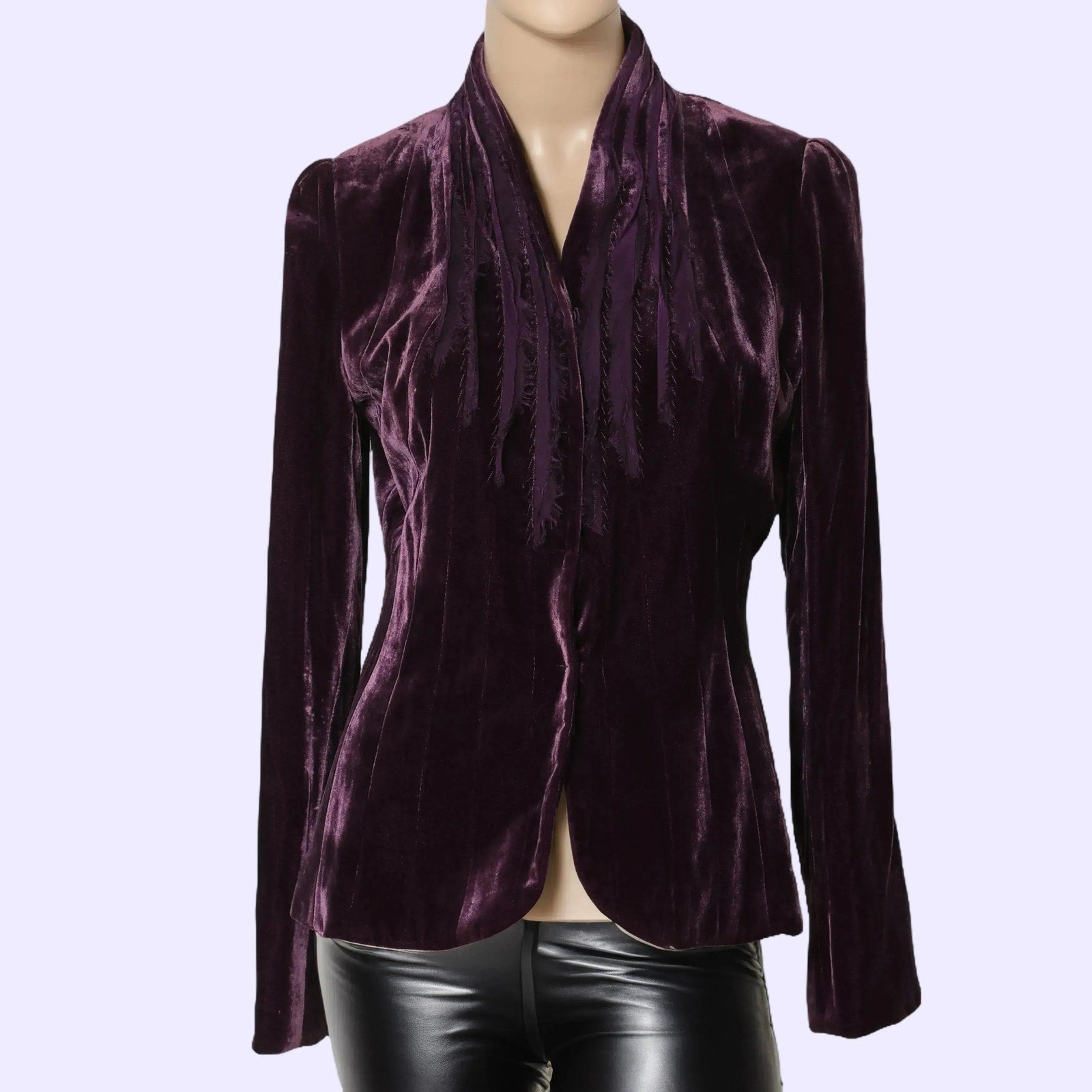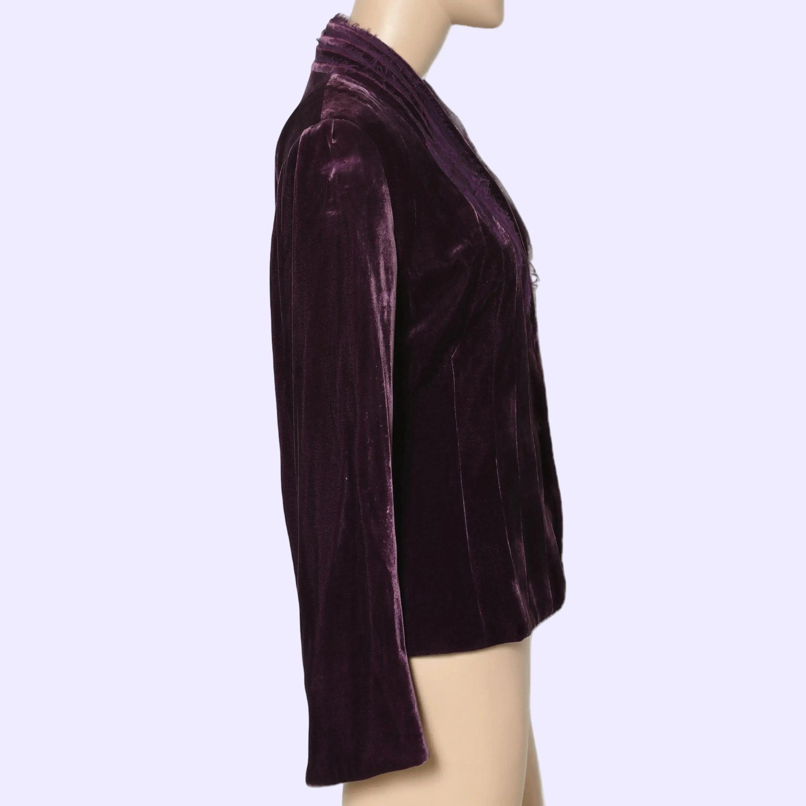 ELIE TAHARI Vintage Burgandy Purple Velvet Ruffled Jacket