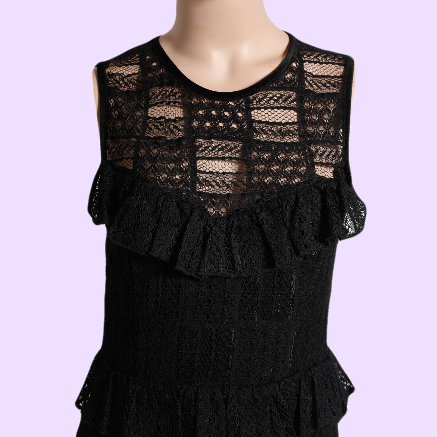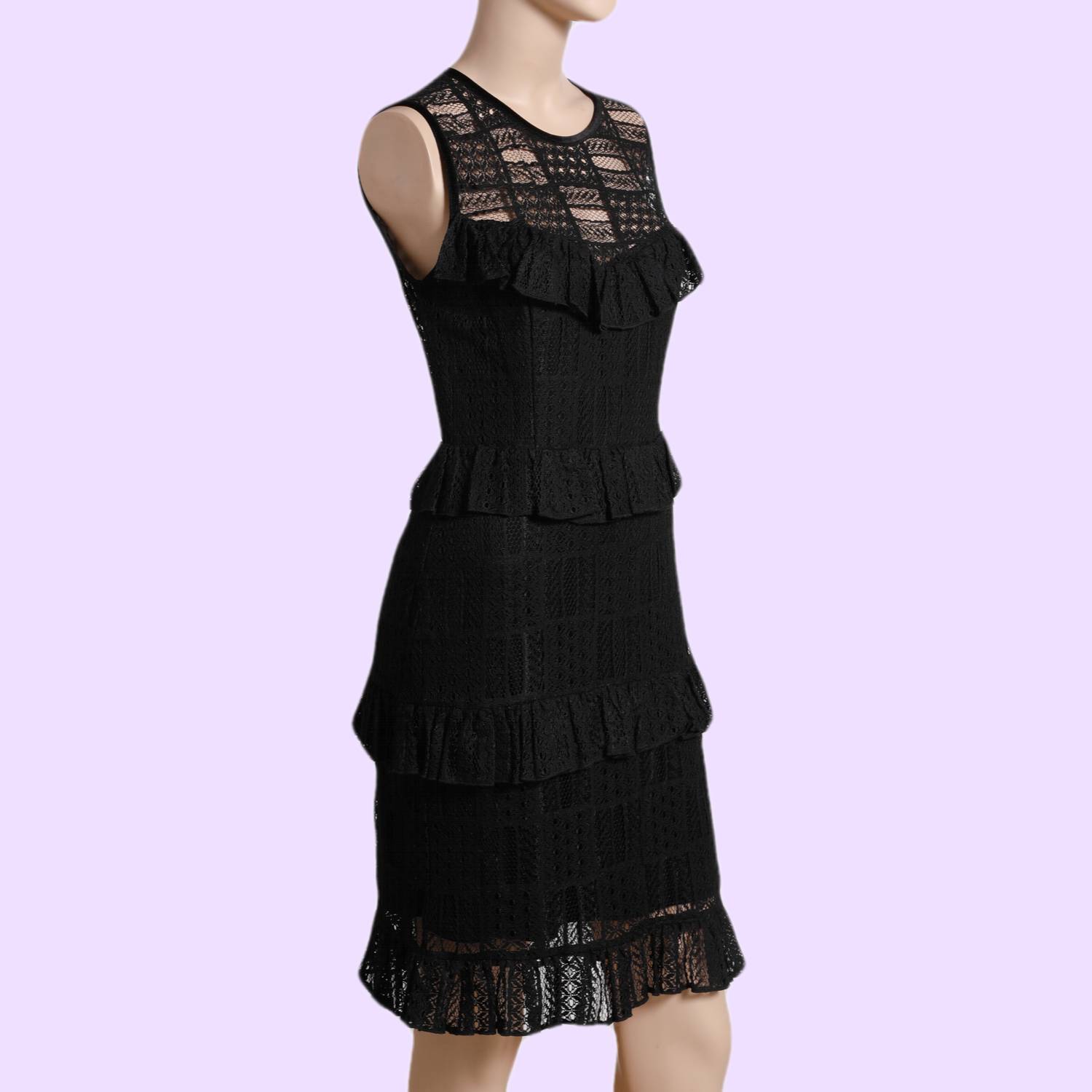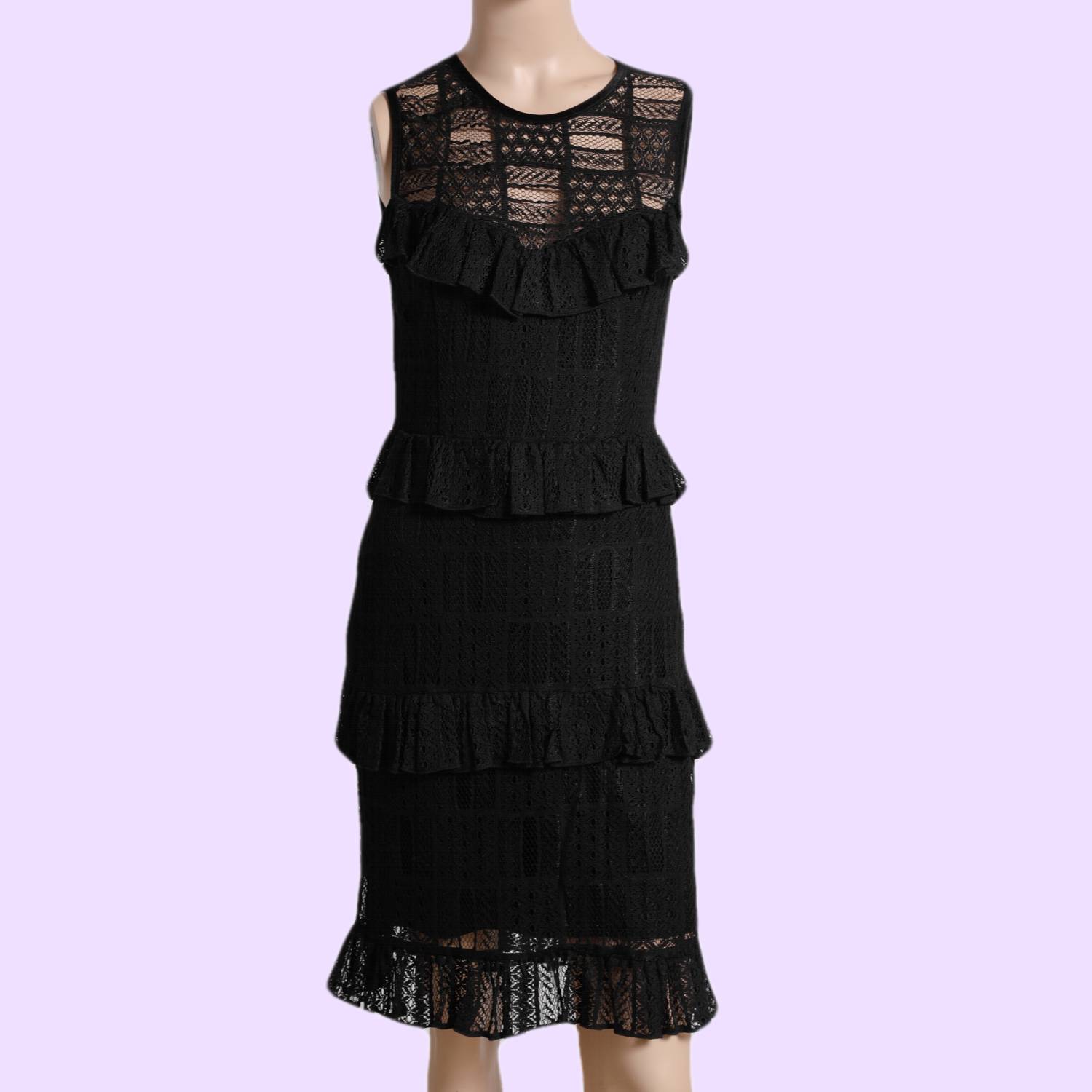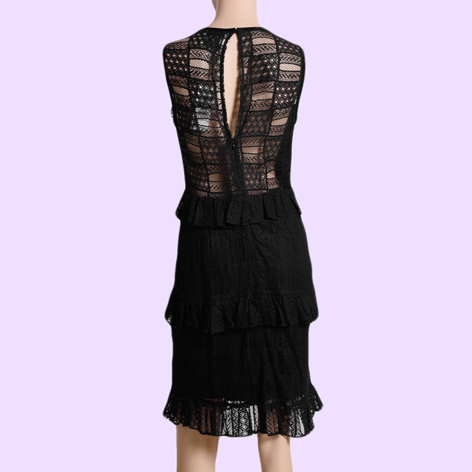 ERIN FETHERSTON Black Lace Sleeveless Ruffled Dress