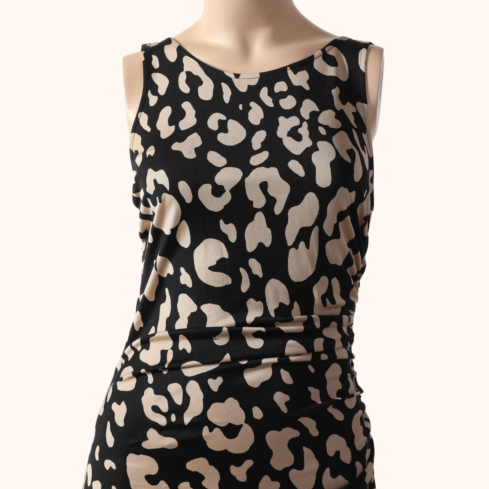 JAY GODFREY Black and Tan Animal Print Silk Mini Dress