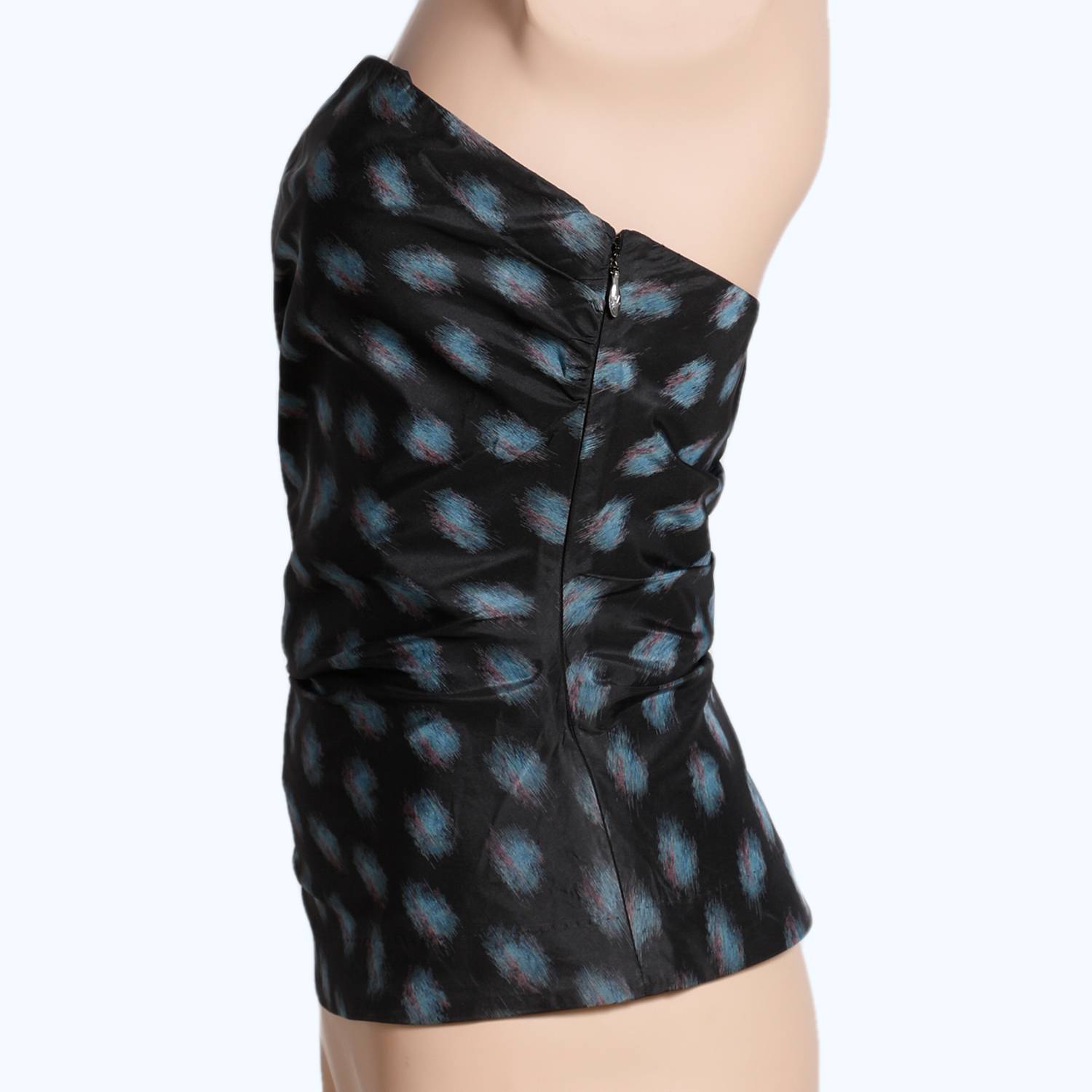 LOUIS VUITTON Blue and Black Patterned Silk Bustier Top