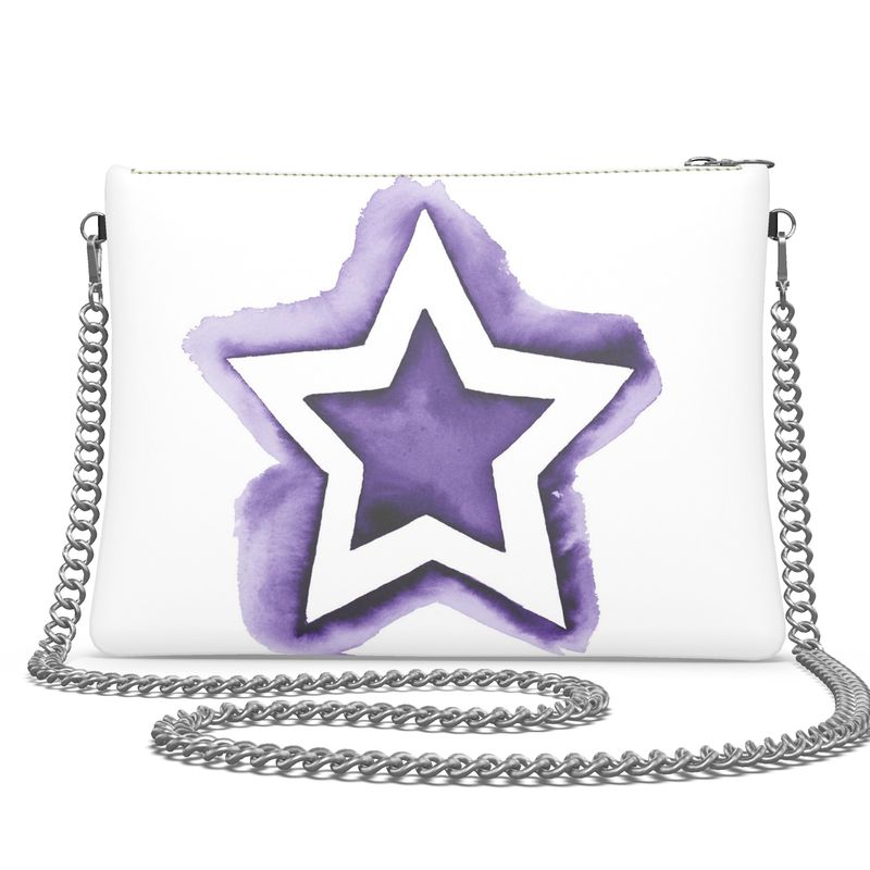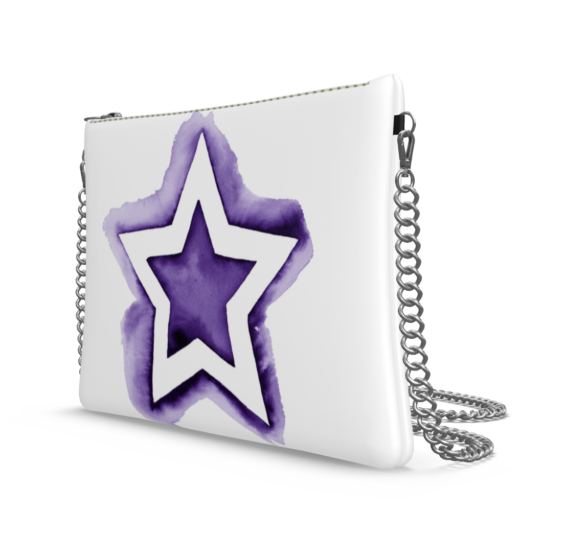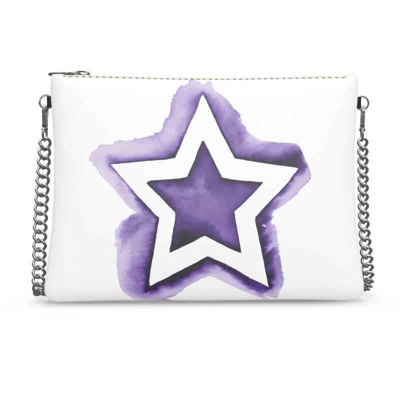 UNTITLED BOUTIQUE White and Purple Leather Crossbody Bag with Silver Chain - Limited Edition