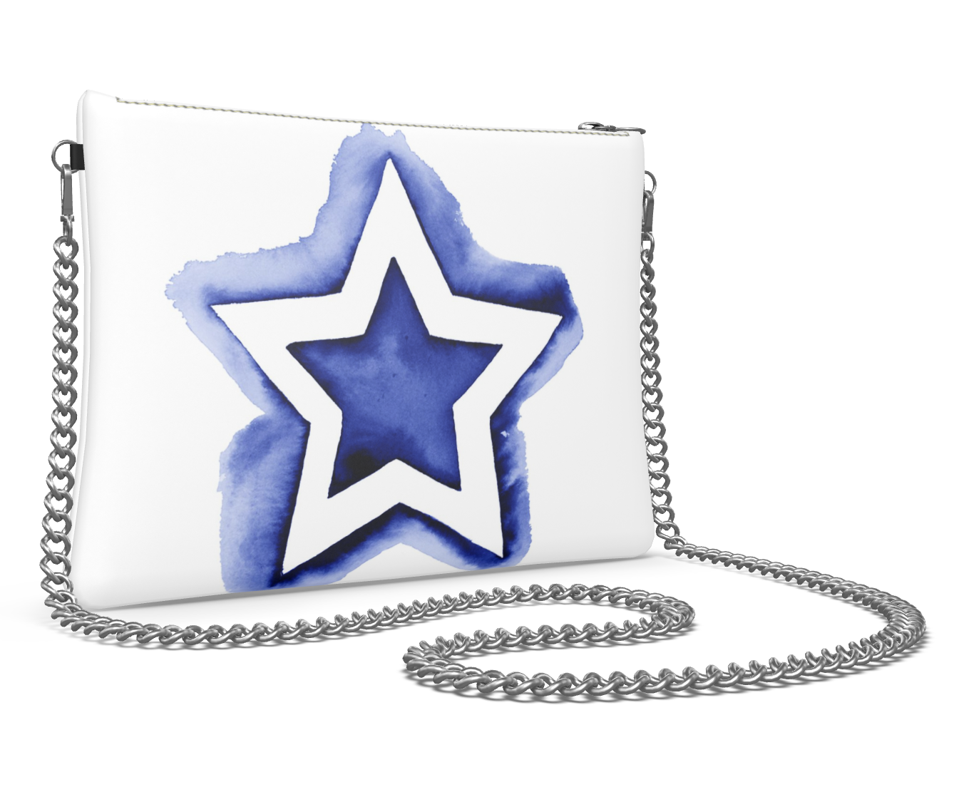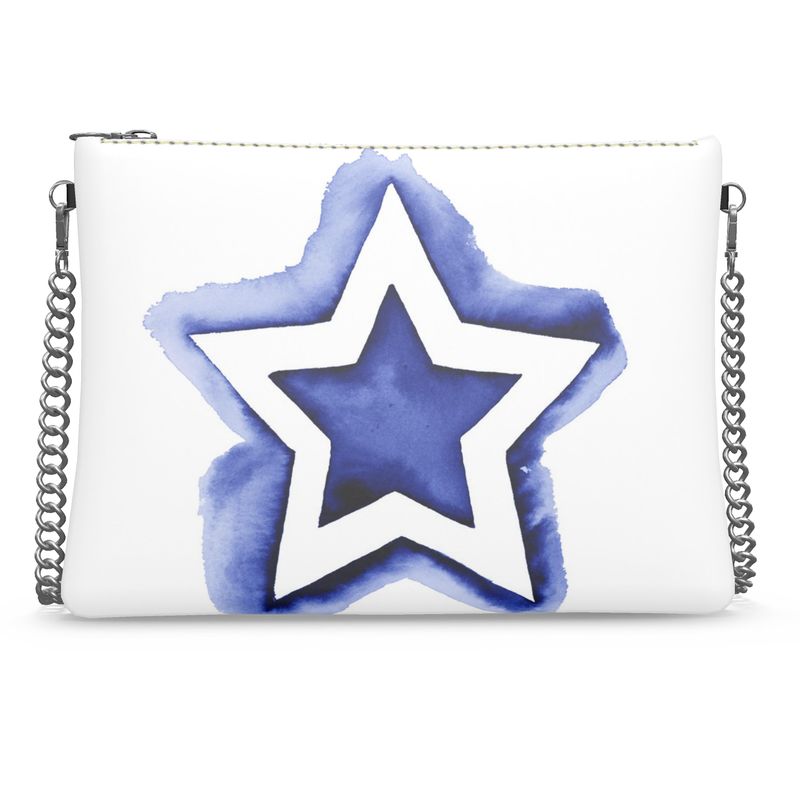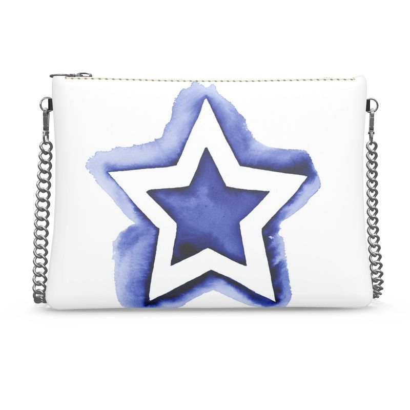 UNTITLED BOUTIQUE White and Blue Leather Star Crossbody Bag with Silver Chain - Limited Edition