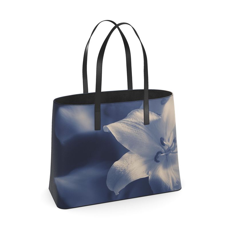 Leather tote bags are the perfect accessory to complete any look. Indira Cesarine's "Blue Lillies" chic Kika tote bag is a limited edition piece made exclusively for our women’s collection by the artist using one of her unique photographs on photo printed fabric. The Nappa leather tote bags are sustainably made in the UK and items are dispatched within 48 hours.