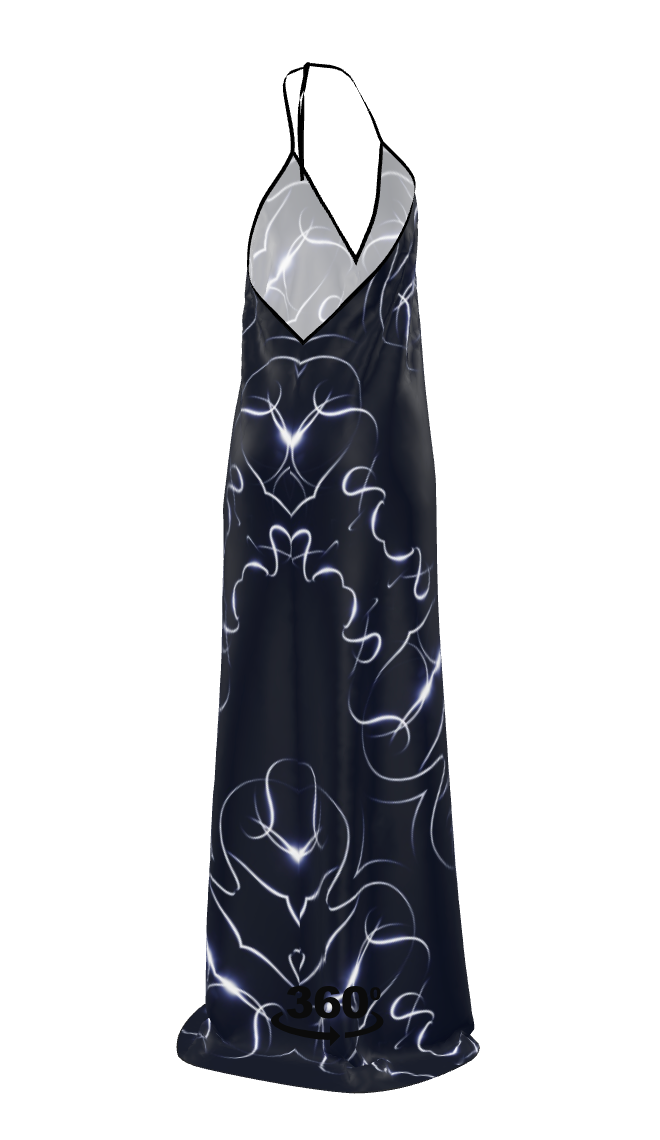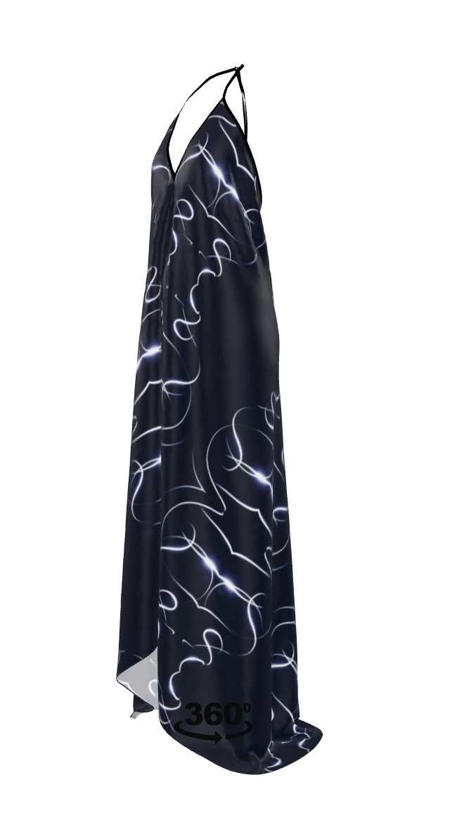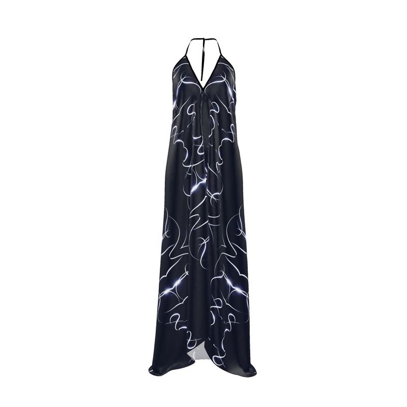Our chic halter dress is a limited edition garment exclusively made for our women’s collection designed by artist Indira Cesarine using one of her unique light painting photograph on photo-printed fabric. The silk halter neck dresses are sustainably made in the UK and items are dispatched within 48 hours.