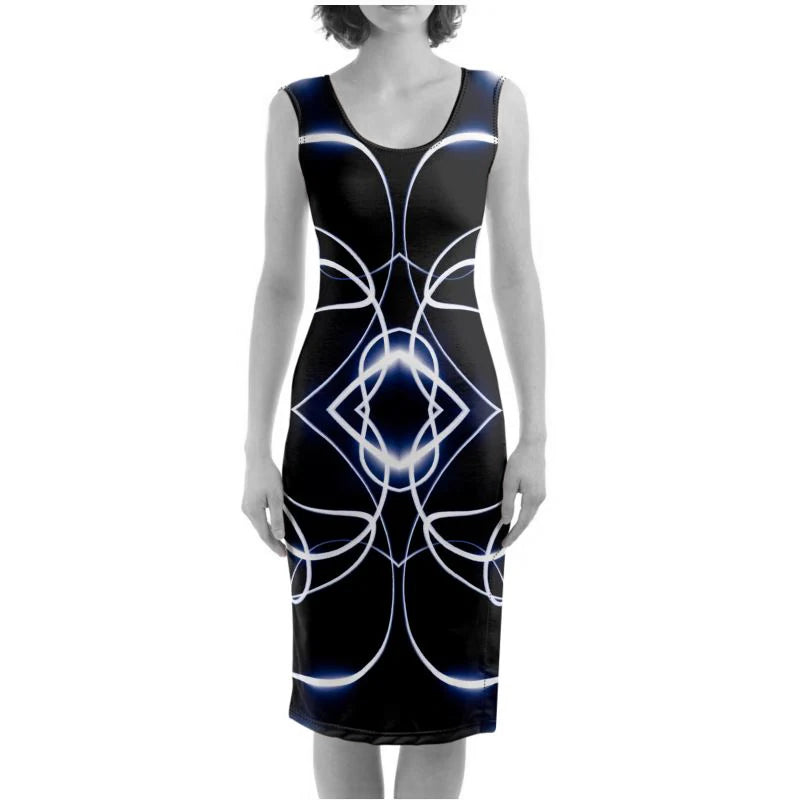 UNTITLED x Indira Cesarine "Lumière" Series Black and Blue Kaleidoscopic Bodycon Dress - Limited Edition