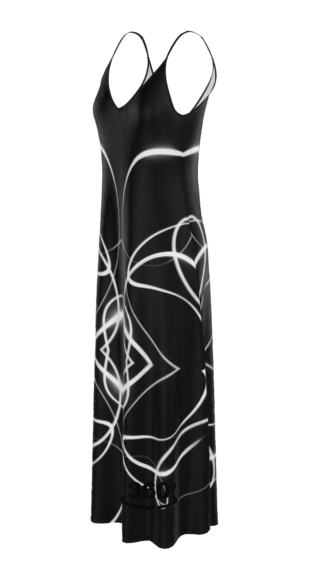 Our chic kaleidoscopic slip dress is a limited edition garment exclusively made for our women’s collection designed by artist Indira Cesarine using one of her unique light painting photographs on photo-printed fabric. The silk slip dresses are sustainably made in the UK and items are dispatched within 48 hours.