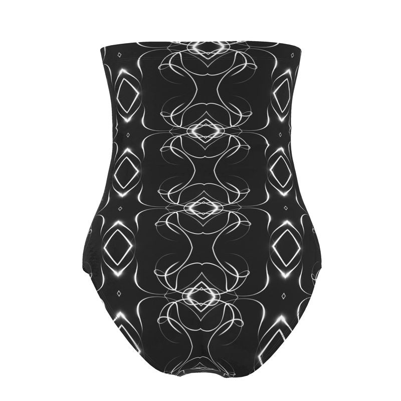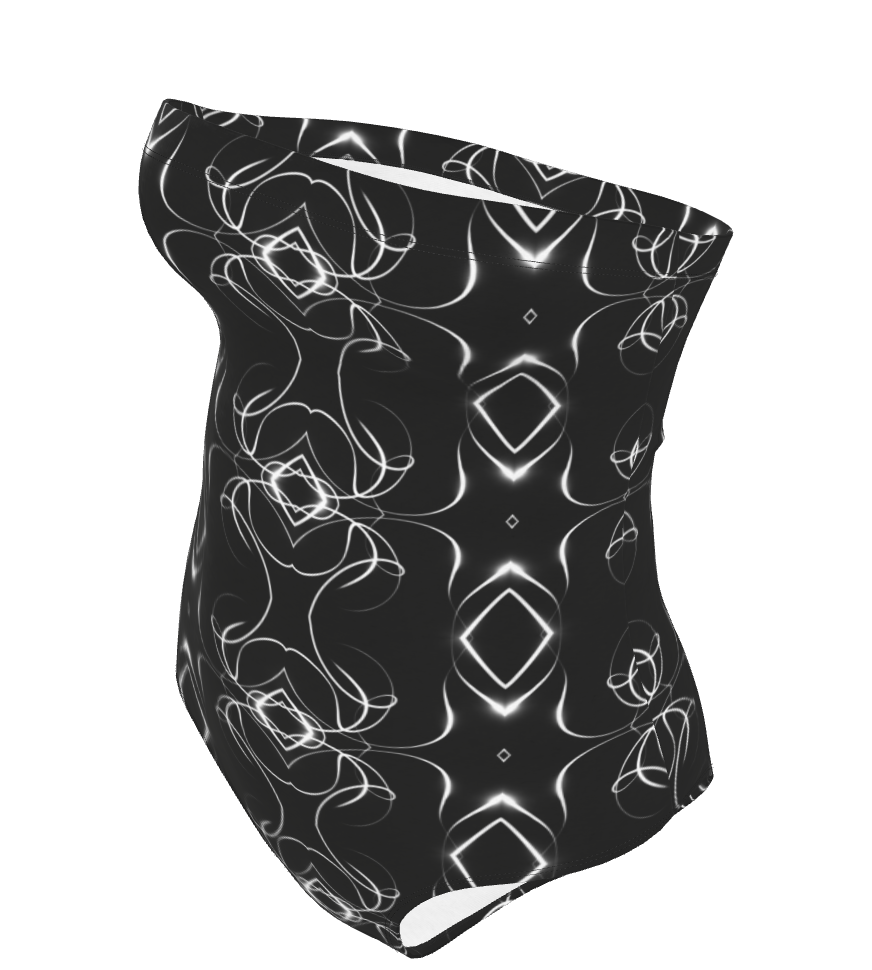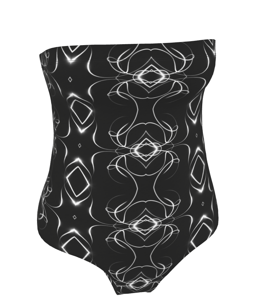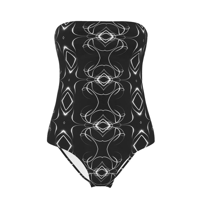 UNTITLED x Indira Cesarine "Lumière" Series Black and White Kaleidoscopic Strapless Swimsuit - Limited Edition