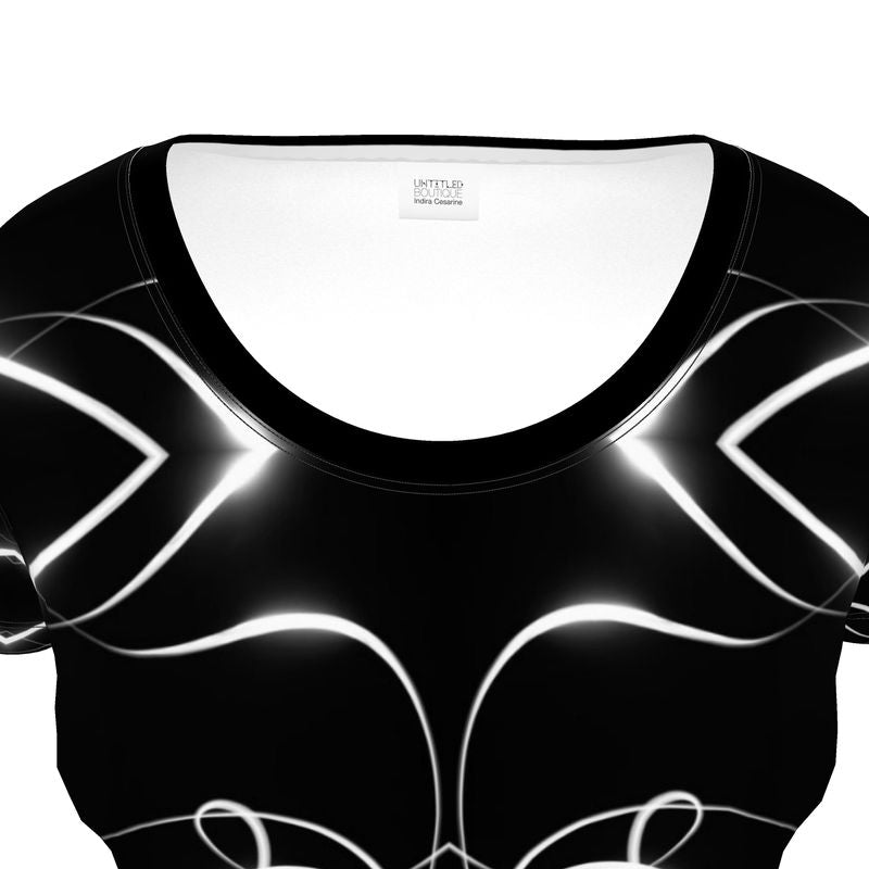 UNTITLED x Indira Cesarine "Lumière" Series Black and White Kaleidoscopic Ladies Scoop Neck T-Shirt - Limited Edition