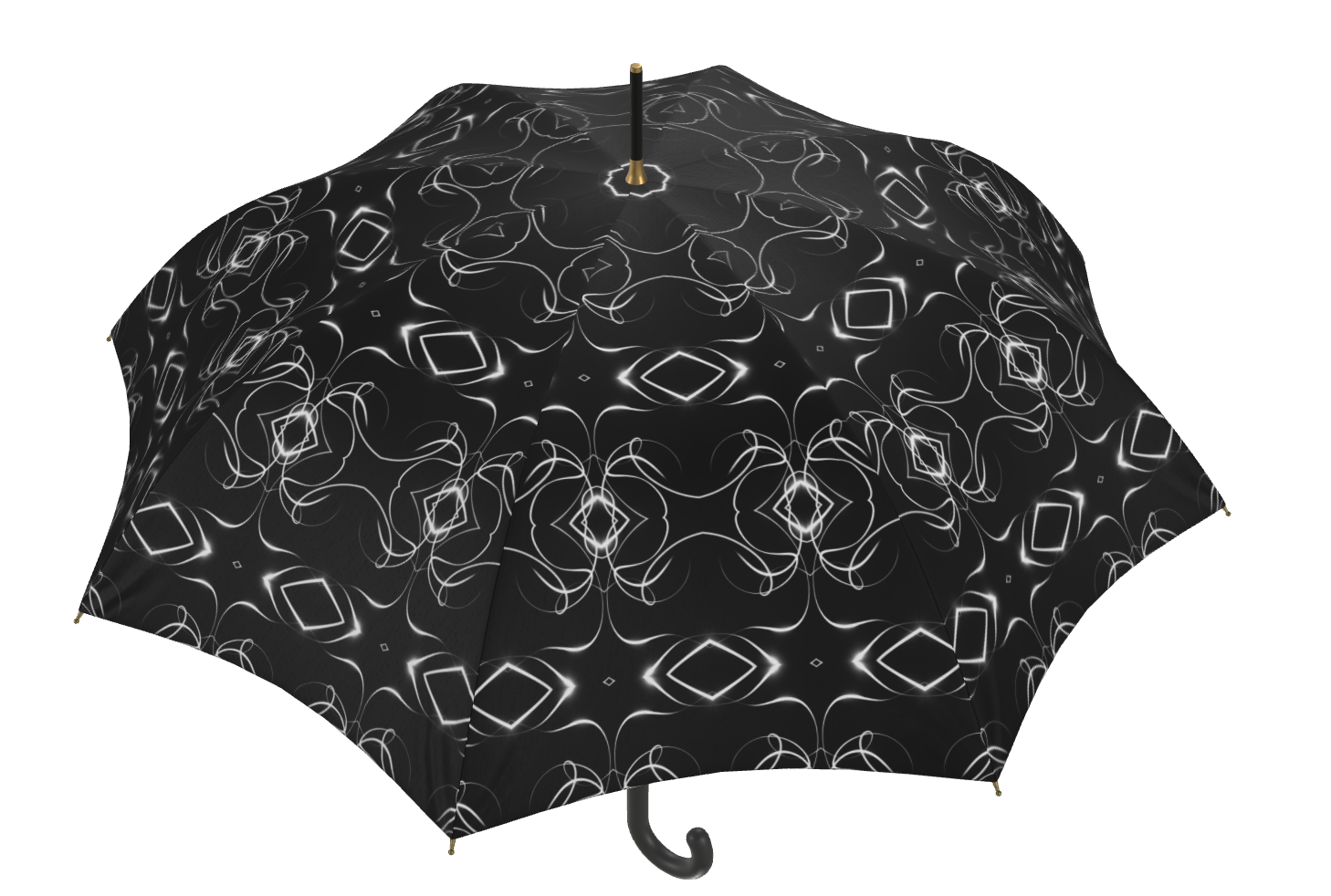 Stay dry under with our limited edition chic black and white kaleidoscopic umbrella exclusively made for our collection designed by artist Indira Cesarine using one of her unique light painting photograph on photo-printed fabric. The umbrella is sustainably made in the UK and items are dispatched within 48 hours.