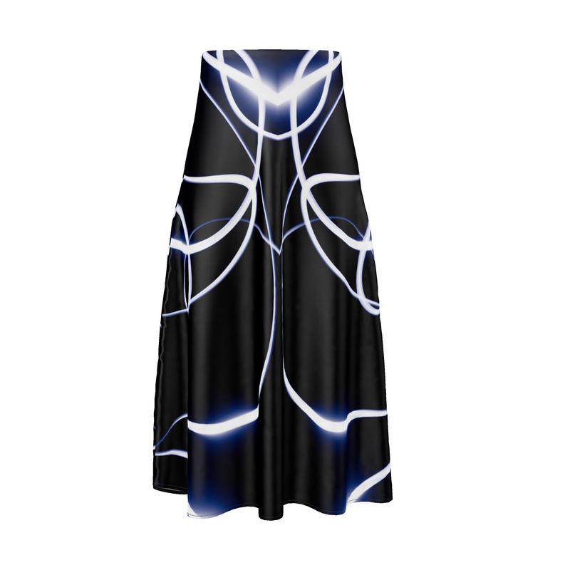Our chic midi skirt is a limited edition garment exclusively made for our women’s collection designed by artist Indira Cesarine using one of her unique light painting photographs on photo-printed fabric. The silk or polyester midi skirts are sustainably made in the UK and items are dispatched within 48 hours.