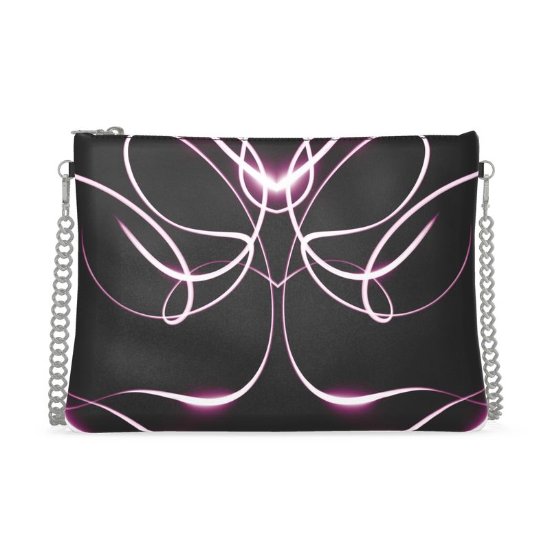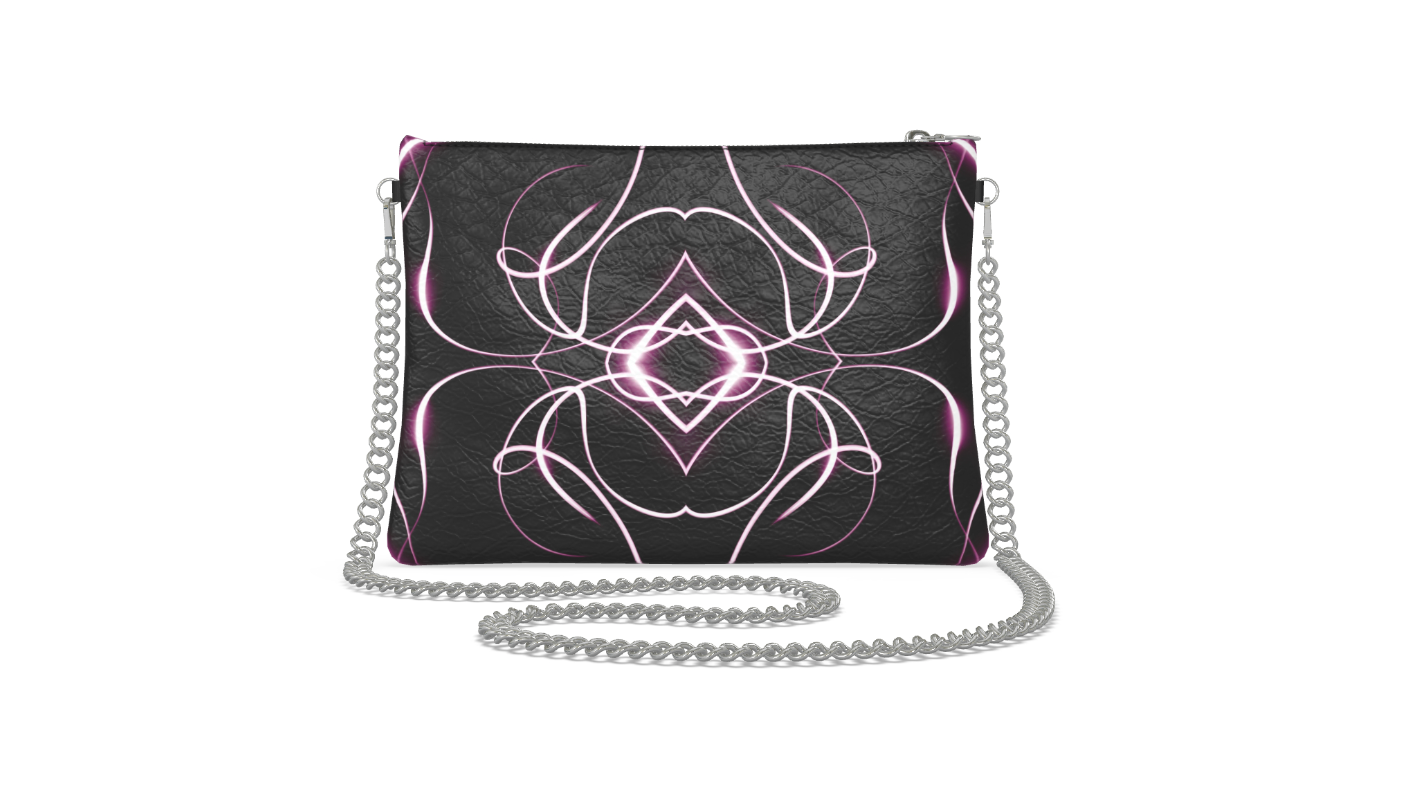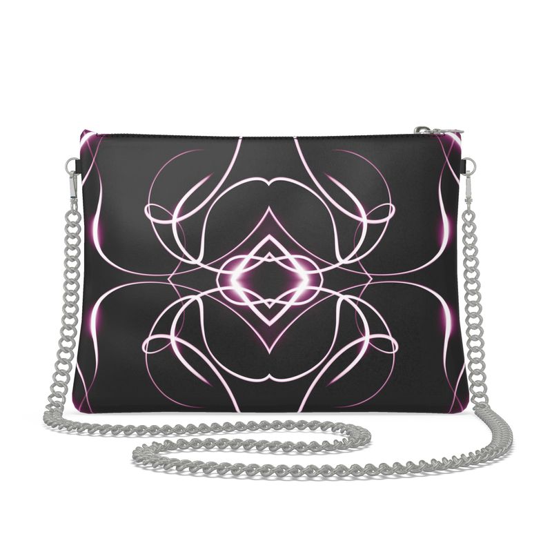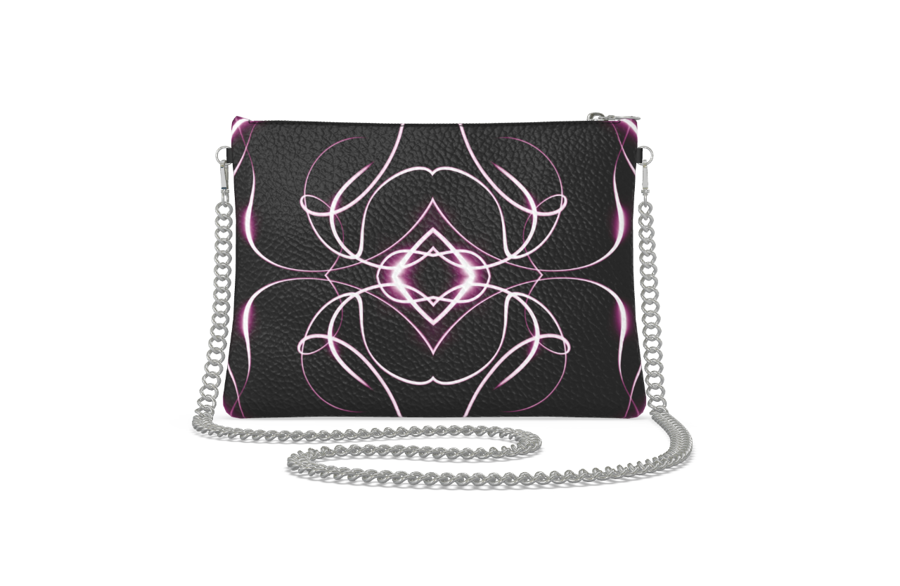 UNTITLED x Indira Cesarine "Lumière" Series Black and Pink Kaleidoscopic Leather Crossbody Bag with Silver Chain - Limited Edition