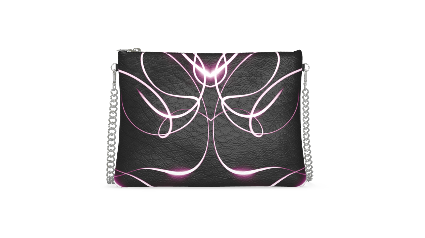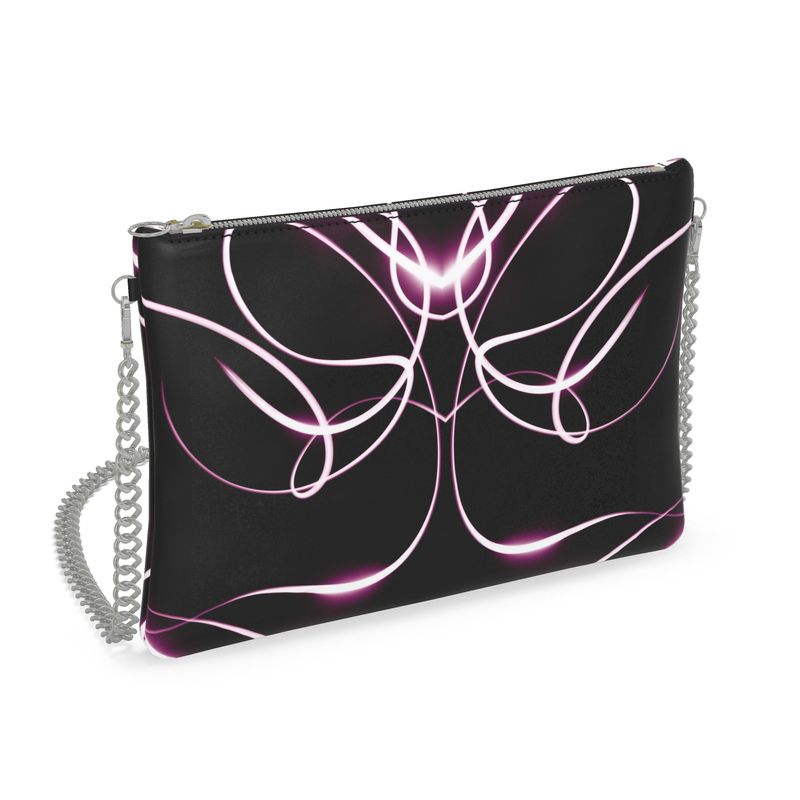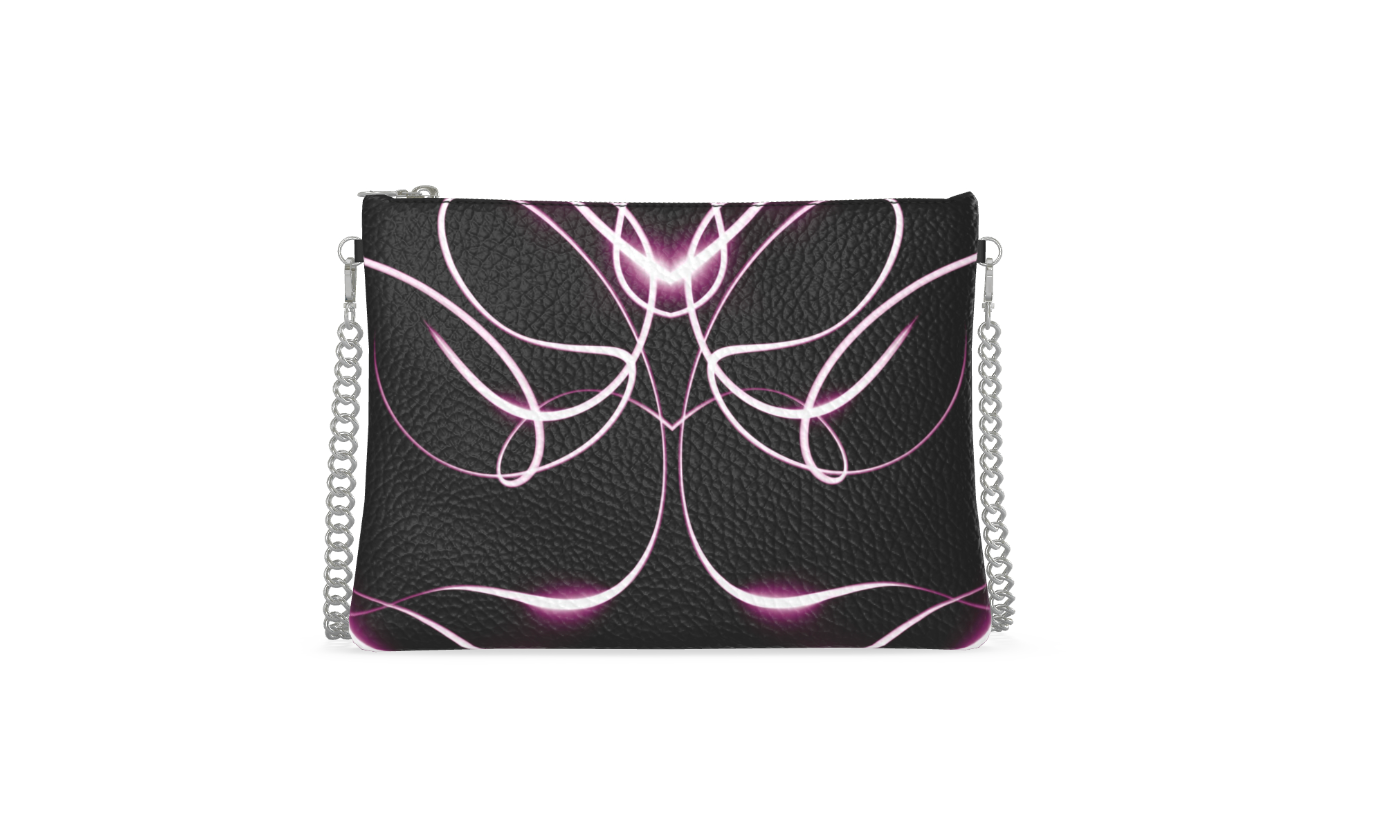 UNTITLED x Indira Cesarine "Lumière" Series Black and Pink Kaleidoscopic Leather Crossbody Bag with Silver Chain - Limited Edition