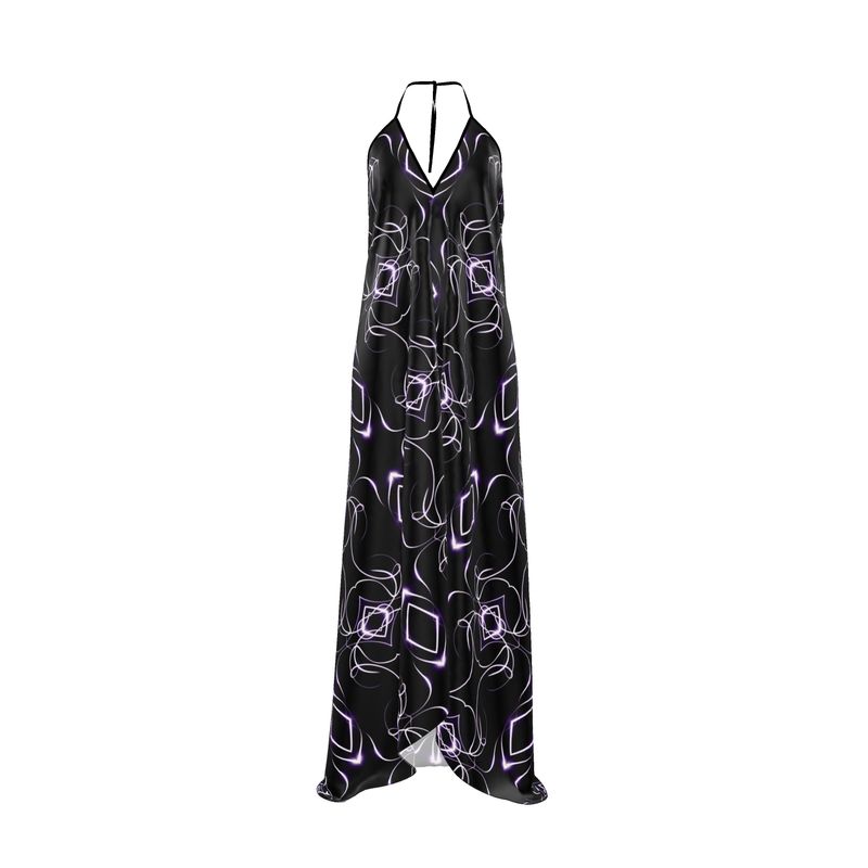 UNTITLED x Indira Cesarine "Lumière" Series Black and Violet Kaleidoscopic Halter Neck Backless Dress - Limited Edition