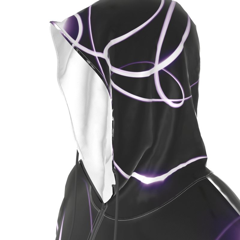 Our chic kaleidoscopic light painting Hazmat Jumpsuit is a limited edition garment exclusively made for our women’s collection, designed by artist Indira Cesarine, featuring her unique light painting photograph on photo-printed fabric, it is a pocketless, zip-up design that has been specifically created as an all-in-one solution to protect your clothing from splashes, spills, and dust. Made from Ella Waterproof fabric, the hazmat jumpsuit is sustainably made in the UK and items are dispatched within 48 hours.