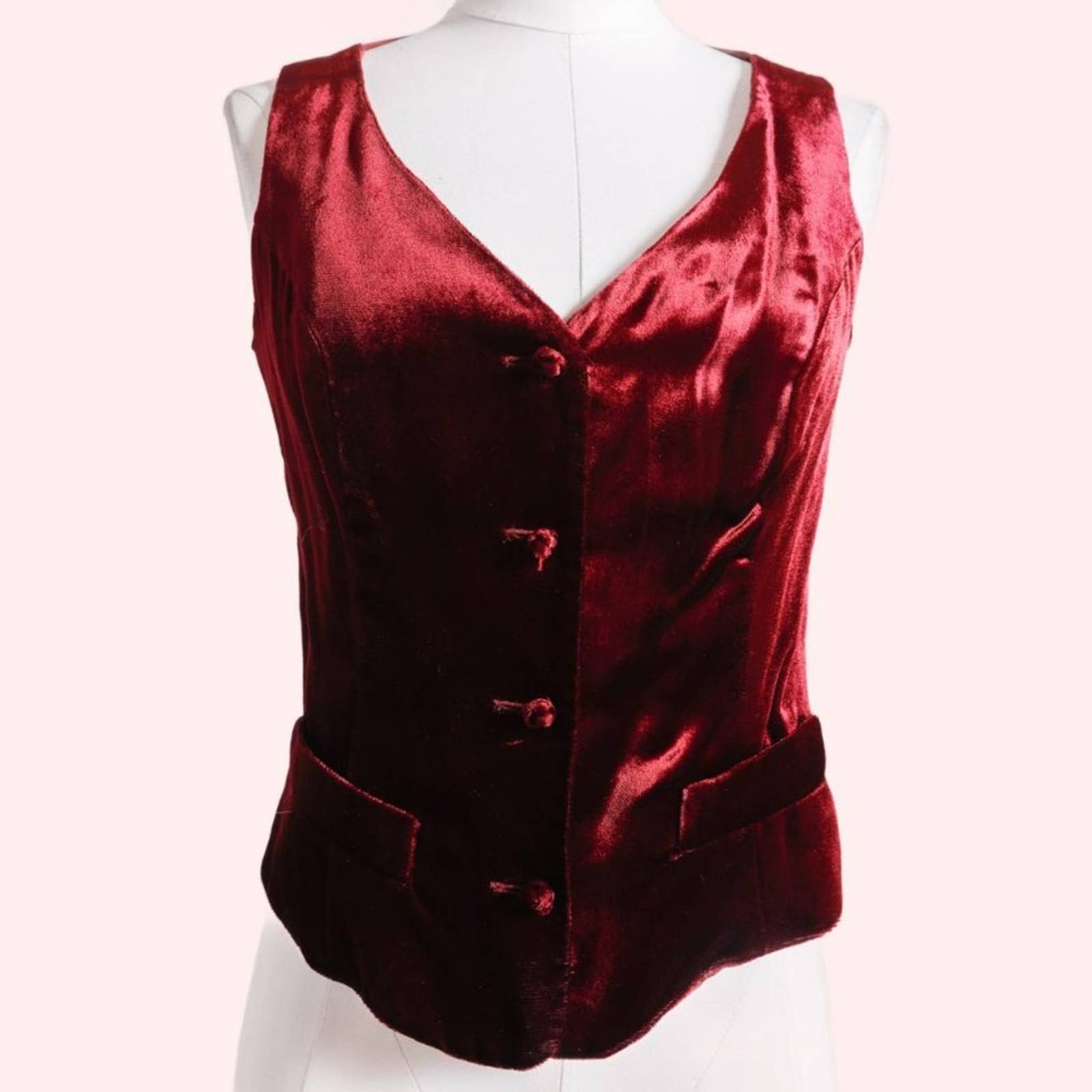 VINTAGE MARK EISEN Bordeaux Velvet Button Up Sleeveless Vest
