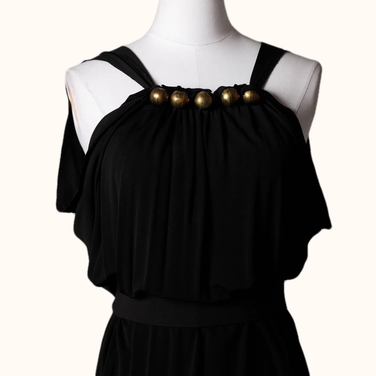 YIGAL AZROUEL Black Dress with Gold Bead Embellished Neckline