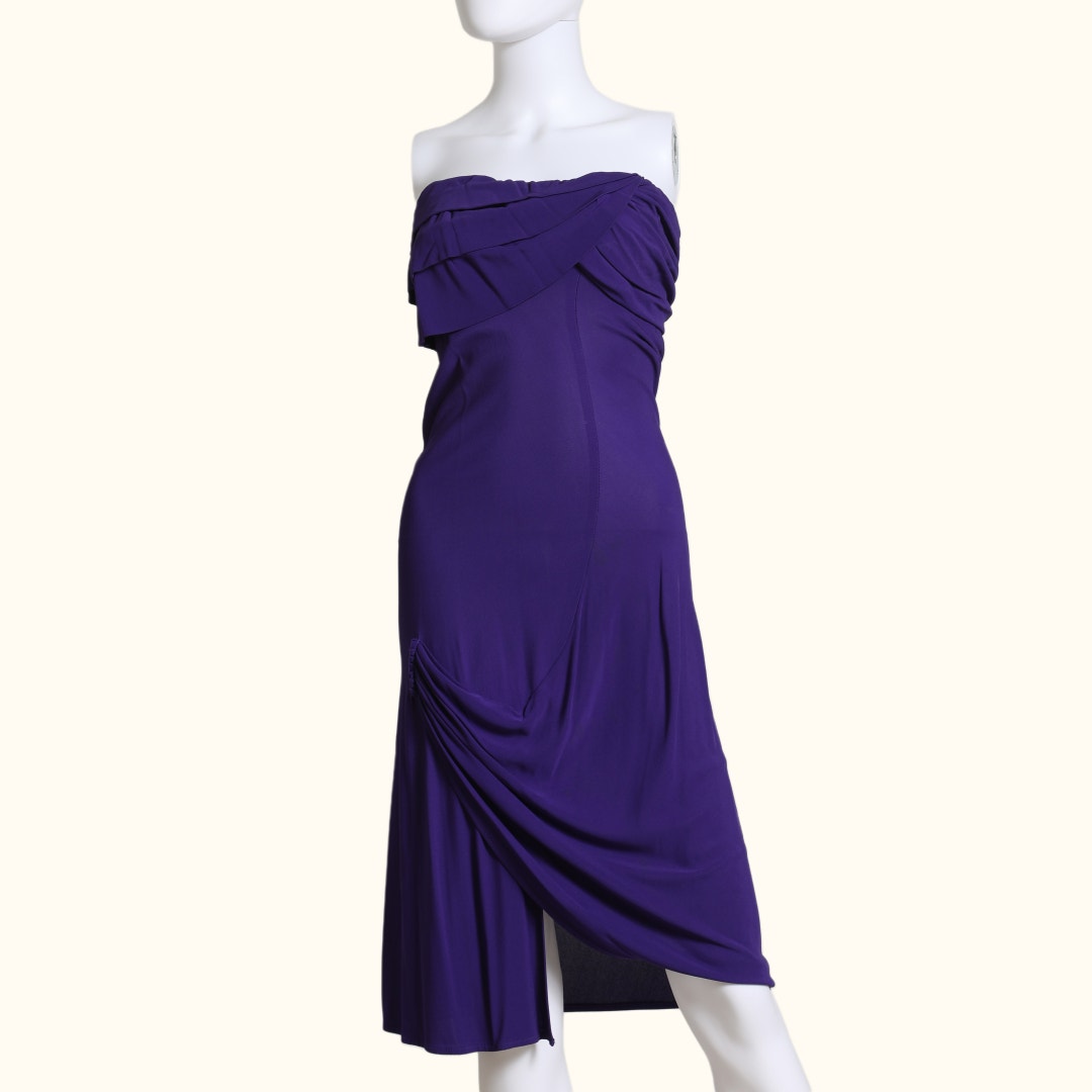 YIGAL Azrouël Violet Purple Strapless Knee Length Dress